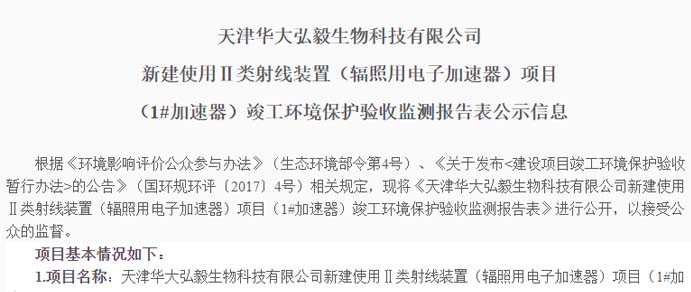 桂林華大生物科技有限公司使用電子加速器輻照項目竣工環(huán)境保護驗收信息公示